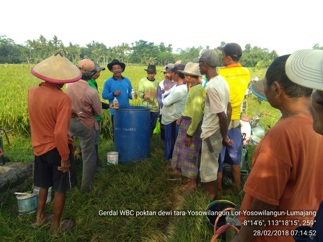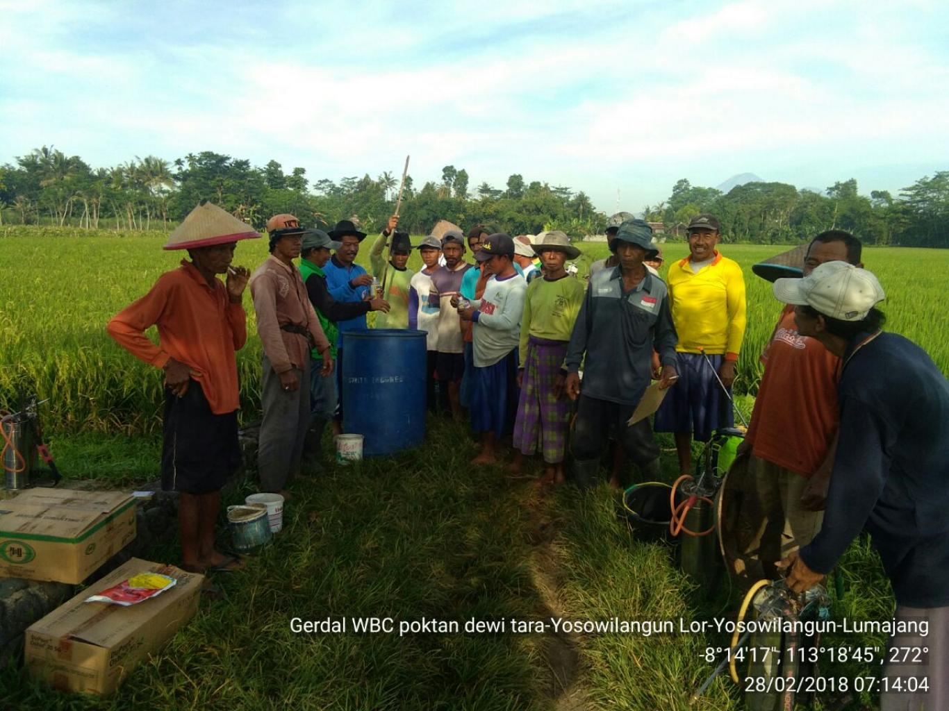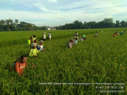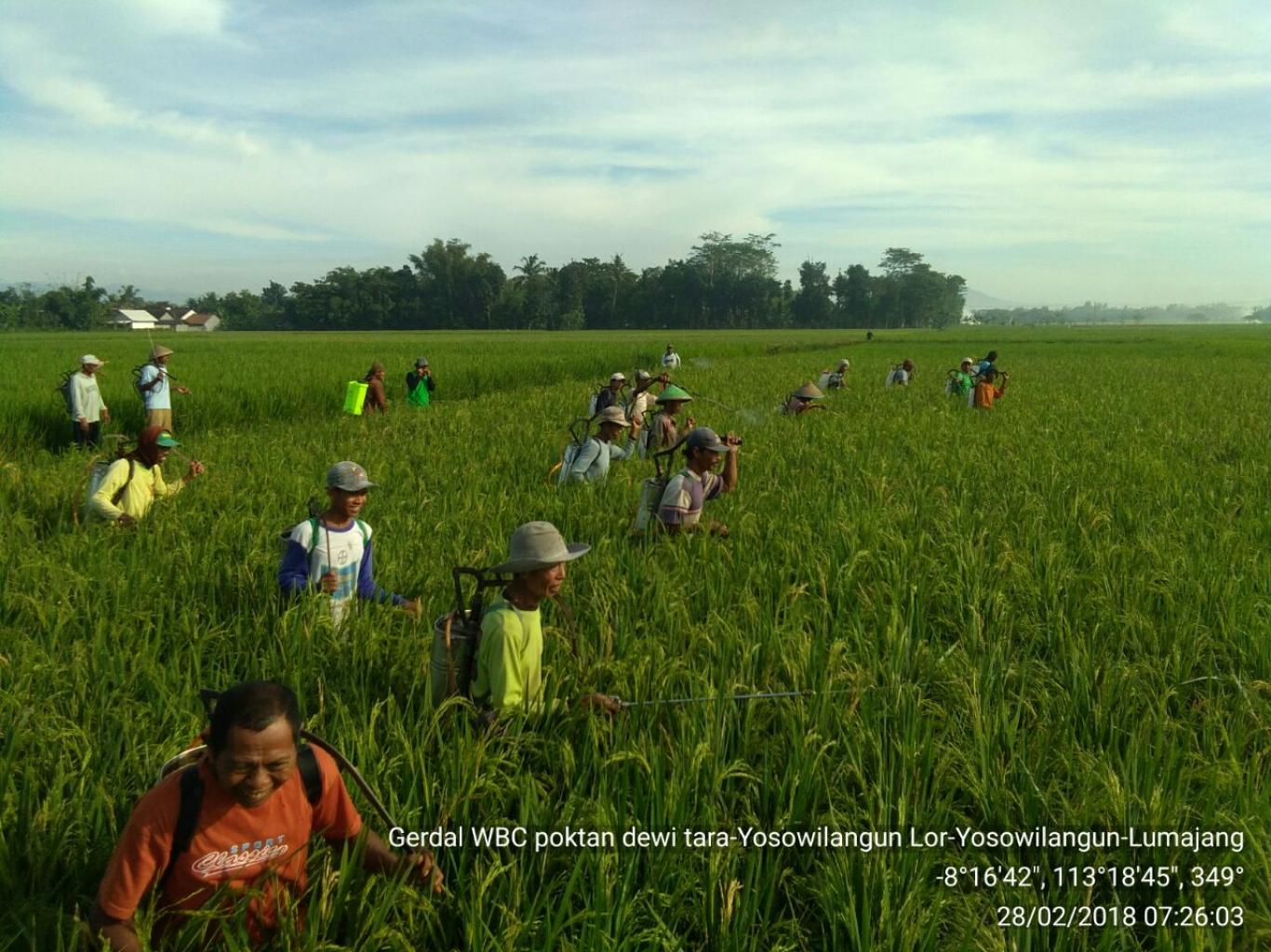 Dengan kesigapan pemerintah Desa Yosowilangun lor dan dinas pertanian, Babinsa bersama sama petani mengadakan Pengobatan atau penyemprotan massal dalam pembasmian hama wereng coklat yang menyerang dilokasi kelompok tani Dewitara akhirnya dapat diatasi.