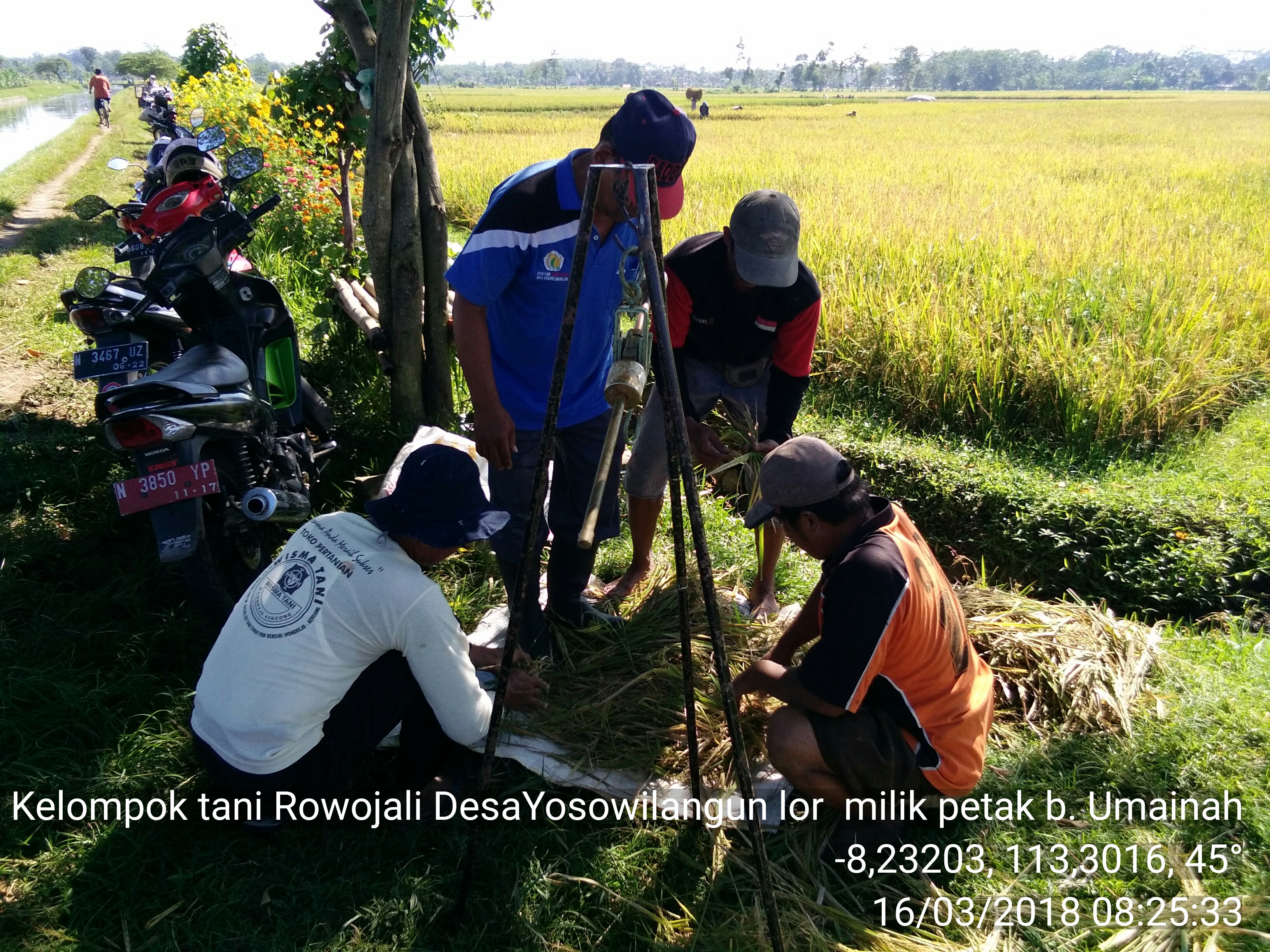Guna Untuk mengetahui hasil pertanian dan meningkatkan hasil padi kelompok tani Rowojali mengadakan kegiatan ubinan bersama sama ppl pertanian dan pemerintah desa yosowilangun lor di lokasi kelompok tani Rowojali