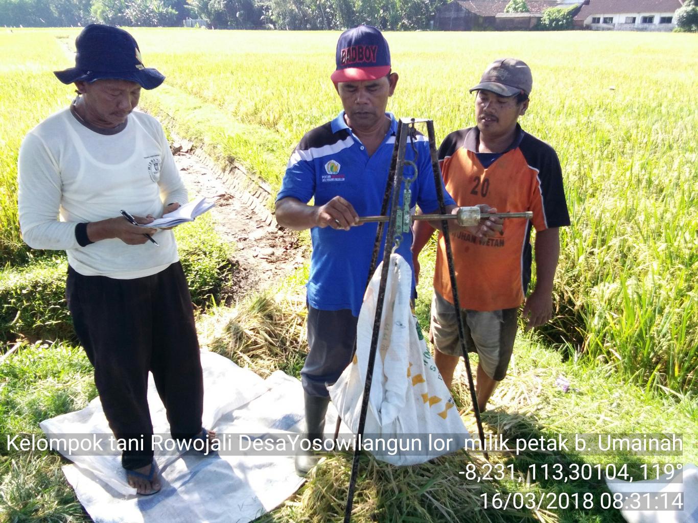 Guna mengetahui hasil petanian Kelompok tani Rowojali bersama ppl pertanian dan pemerintah desa yosowilangun lor mengadakan kegiatan Ubinan
